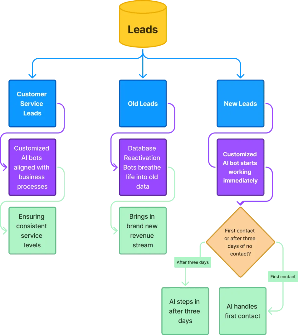 Grow smarter, not harder. Our AI seamlessly handles increasing lead volumes, allowing you to scale your business without expanding your team. Your existing staff can focus on high-value tasks while AI nurtures and qualifies leads.